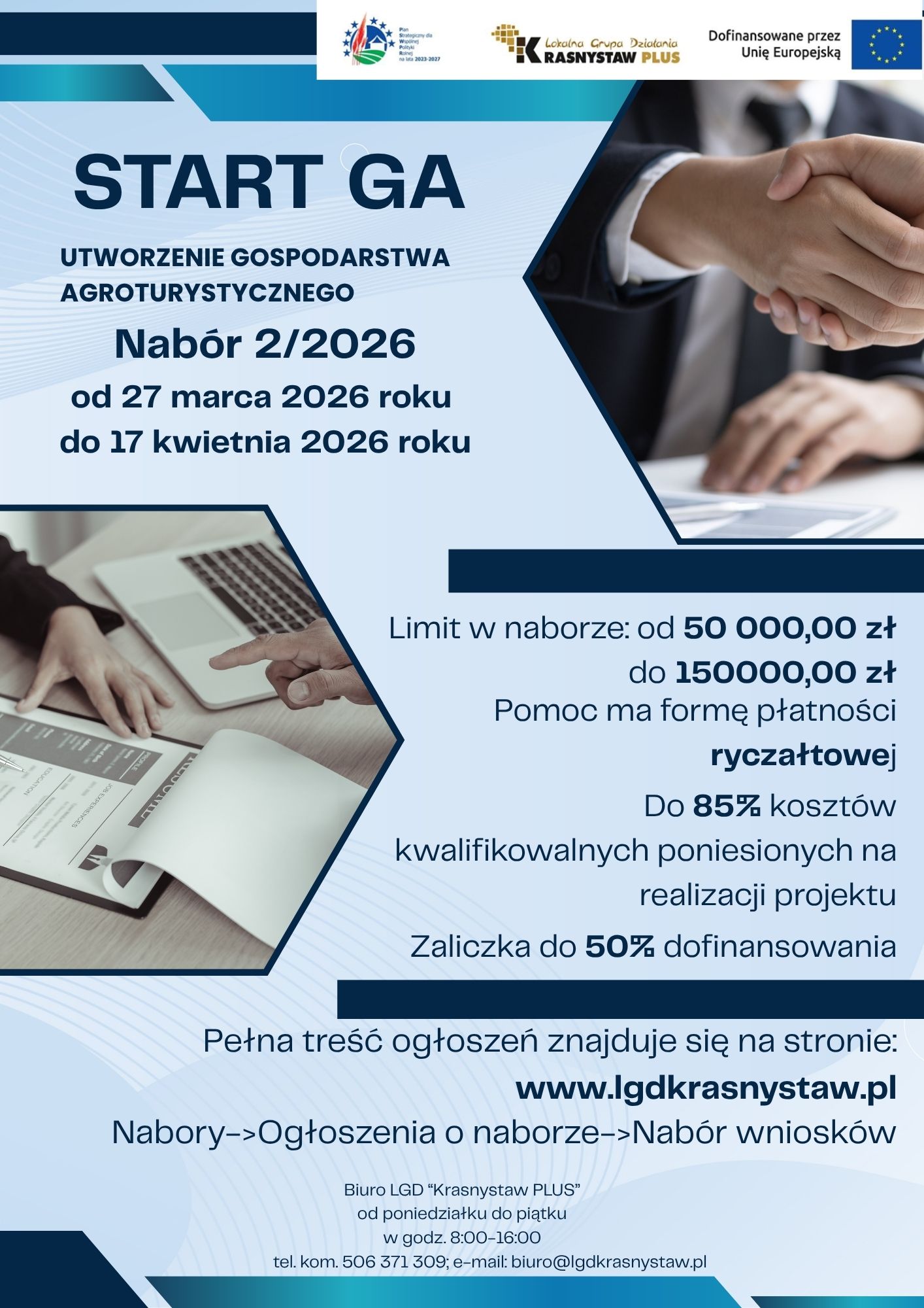 - Rozwój pozarolniczych funkcji małych gospodarstw rolnych poprzez tworzenie gospodarstw agroturystycznych (Start GA),